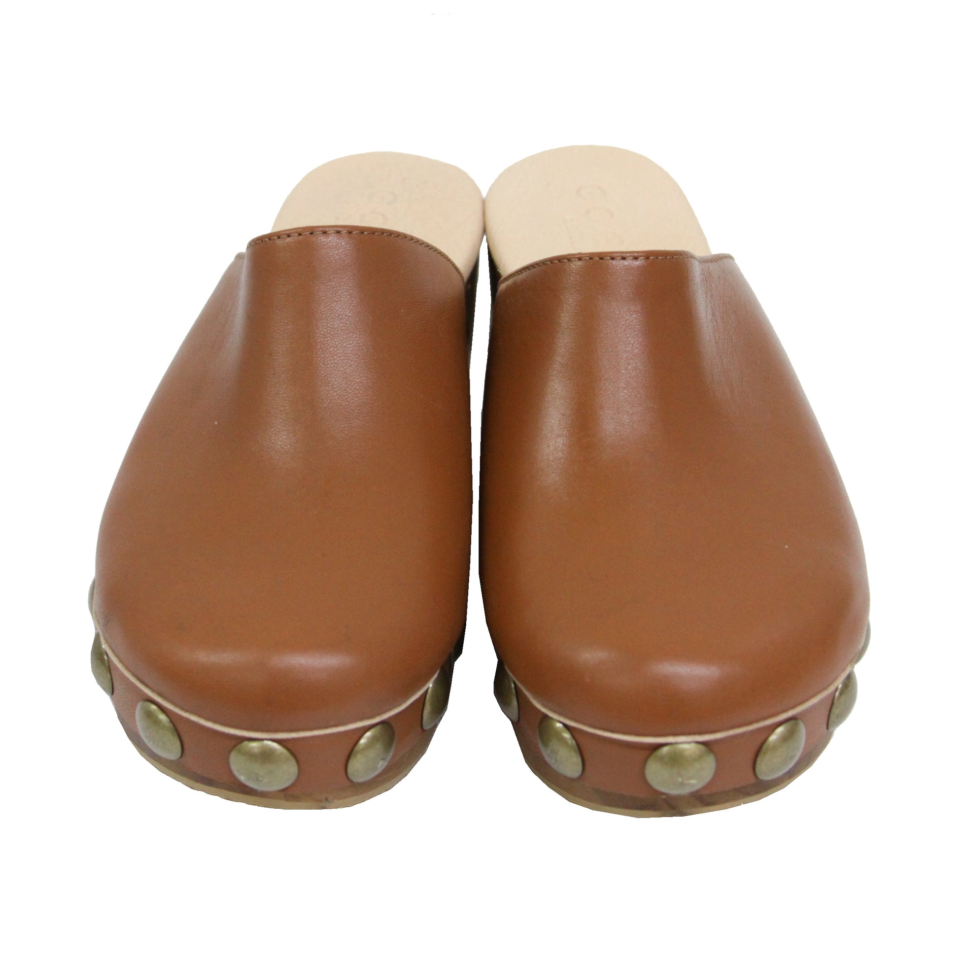 - Comodidad y altura son la clave de los zuecos #Fátima, Están hechas de piel súper suave, con detalle de Tachuelas en oro viejo para dar ese toque único.